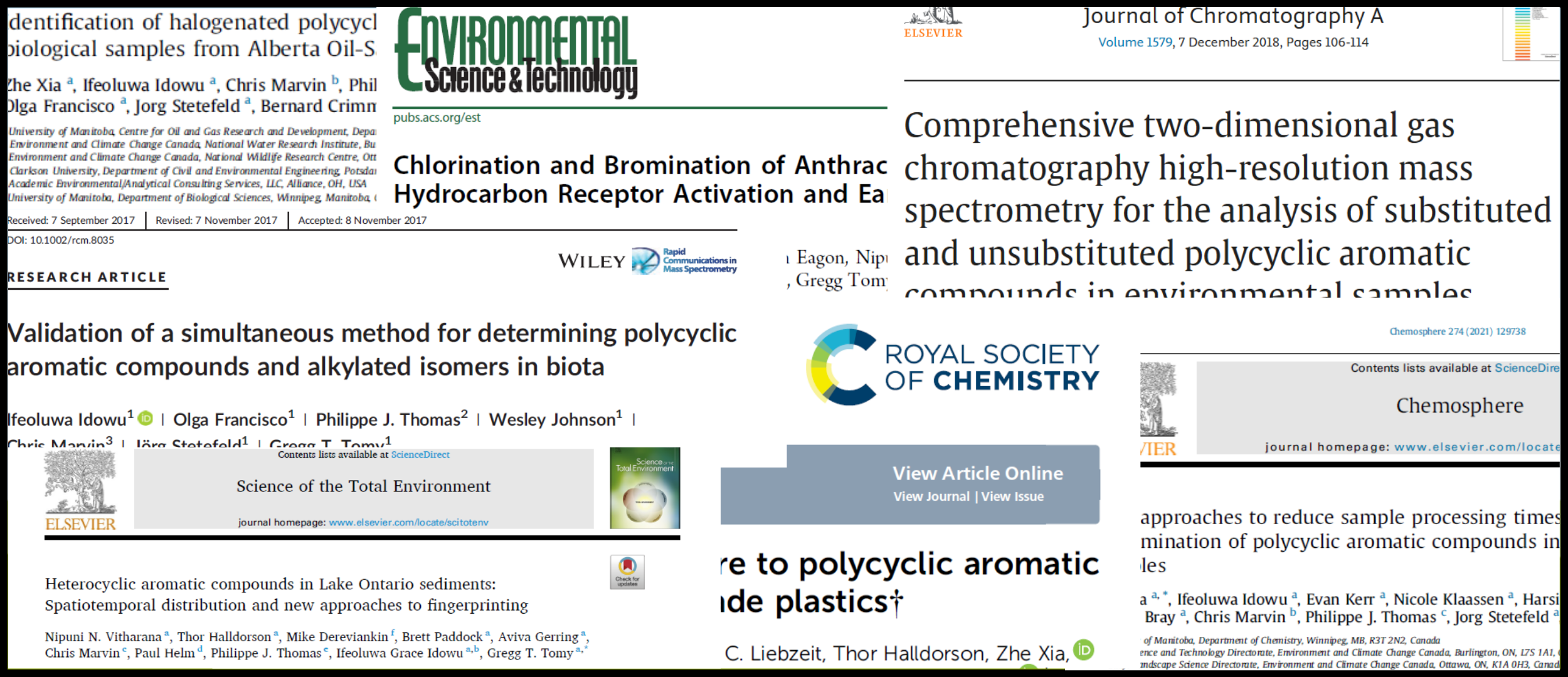 Xia, Z.; Idowu, I.; Kerr, E.; Klaassen, N.; Assi, H.; Bray, H.; Marvin, C.; Thomas, P.J.; Stetefeld, J.; Tomy, G.T. New approaches to reduce sample processing times for the determination of polycyclic aromatic compounds in environmental samples. Chemosphere, 274, 129738.